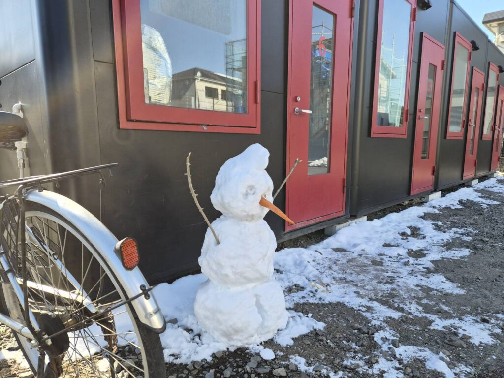 寮の前にはかわいらしい雪だるまがつくられていました。